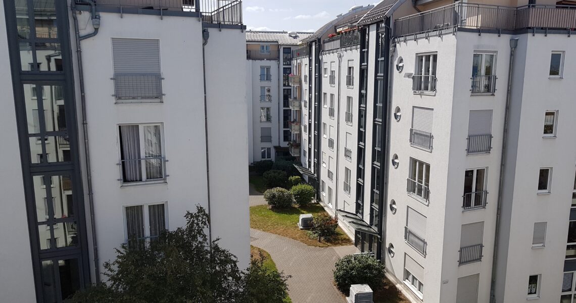 Die Wohnung gehört zu dem im Jahr 1994/95 erweiterten Gebäudeensemble aus insgesamt 22 Häusern in Leipzig-Großzschocher. In unmittelbarer Nachbarschaft befindet sich das Einkaufscenter „Südwest-Zentrum“. Ein grüner Innenhof, eine gemeinschaftliche Tiefgarage und lichtdurchflutete Treppenhäuser runden das Bild ab.